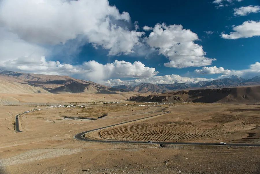 直到快落地时,太阳才终于追上了赶路的人们,将阳光撒向了大地。蜿蜒的河流反射出波光,古老的喀喇昆仑张开了双臂。
