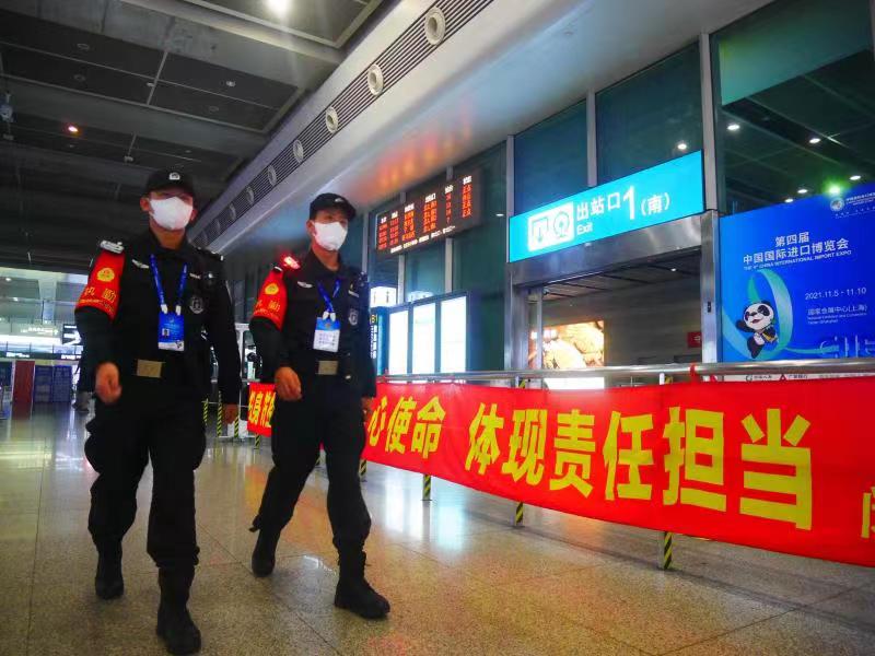 上海铁路公安局作为“进博会”铁路安保的主场,强化担当主责,落实落细各项措施,坚持“屯兵于面、科学管控”的措施,从南京、合肥、徐州等铁路公安处抽调特警增援上海站、虹桥站等重点客运站,加强与车站客运部门、地方公安机关联系,强化信息分析研判,完善联勤联动机制,集中整治站区及周边治安,严打扰乱公共秩序、侵害旅客财产违法行为,净化治安环境。上海铁路公安处上海站派出所联系上海站新增安检设备及安检辅助力量,对部分重点列车到达旅客的行李全面实行到达安检。徐州铁路公安处乘警支队组织便衣小分队添乘进沪、经沪列车,11月份以来破获盗窃、电诈案件3起。杭州铁路公安处乘警支队加大进沪、经沪列车消防检查,督促整改各类隐患7处;余姚站派出所与余姚市公安局对接,加大余姚站、余姚北站巡逻检查力度。南京铁路公安处南通站派出所在南通站、南通西站设立治安检查站,全面提升安检查危等级,11月份以来共督促查获危险品456件;南京西站派出所组织民警深入沿线街道,宣传铁路安全常识。南京铁路公安处江阴站派出所、杭州铁路公安处常山站派出所、徐州铁路公安处三铺站派出所学习借鉴“枫桥经验”,联合车站加强对管内停留货车的清理检查,防止闲杂人员扒乘列车。