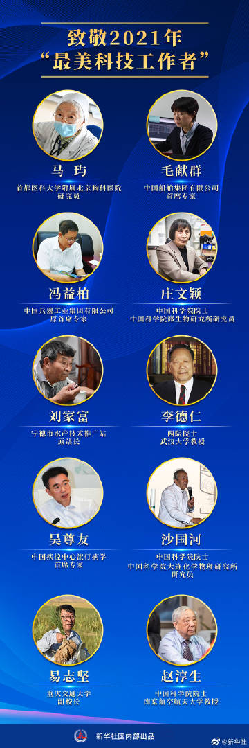 【致敬!他们是#2021年最美科技工作者#!】中央宣传部、中国科协等6部门近日发布2021年“最美科技工作者”先进事迹。他们有的聚焦国家重大需求,自主创新攻克关键核心技术;有的积极投身抗疫最前线,践行“全心全意为病人服务”初心;有的毕生致力于成果转化技术推广,将论文写在祖国大地上……他们是谁?戳图,致敬闪耀的科技群星!(记者:温竞华,海报制作:杨轶群)