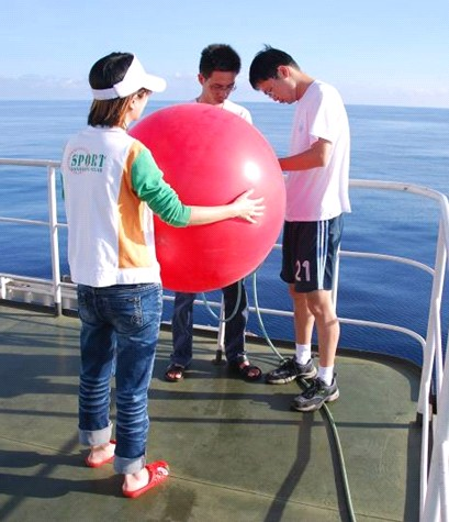 在航次考察过程中释放探空气球(摄影:李毅能)