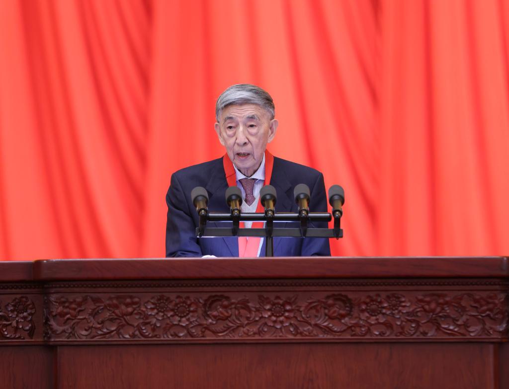 获得2020年度国家最高科学技术奖的清华大学王大中院士代表全体获奖人员发言。新华社记者 庞兴雷 摄