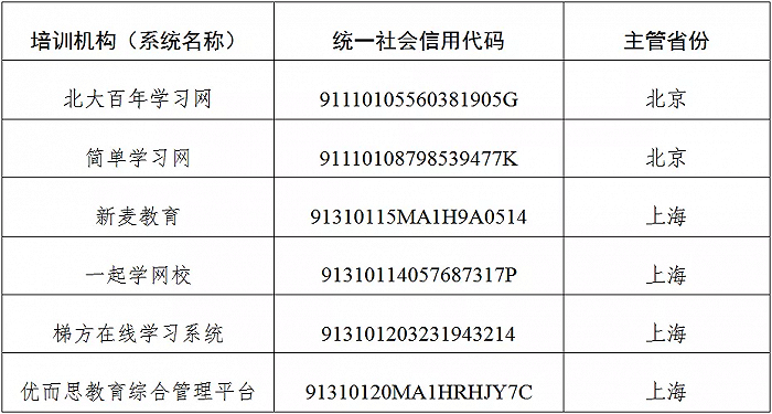 据查,2021年秋季开学以来,北大百年学习网、简单学习网、新麦教育、一起学网校、梯方在线学习系统、优而思教育综合管理平台等6家校外培训机构存在国家法定节假日、休息日、学生正常上课及休息等时段违规开班培训和内部管理混乱、公示信息不符合规定等问题,现予以公开曝光。