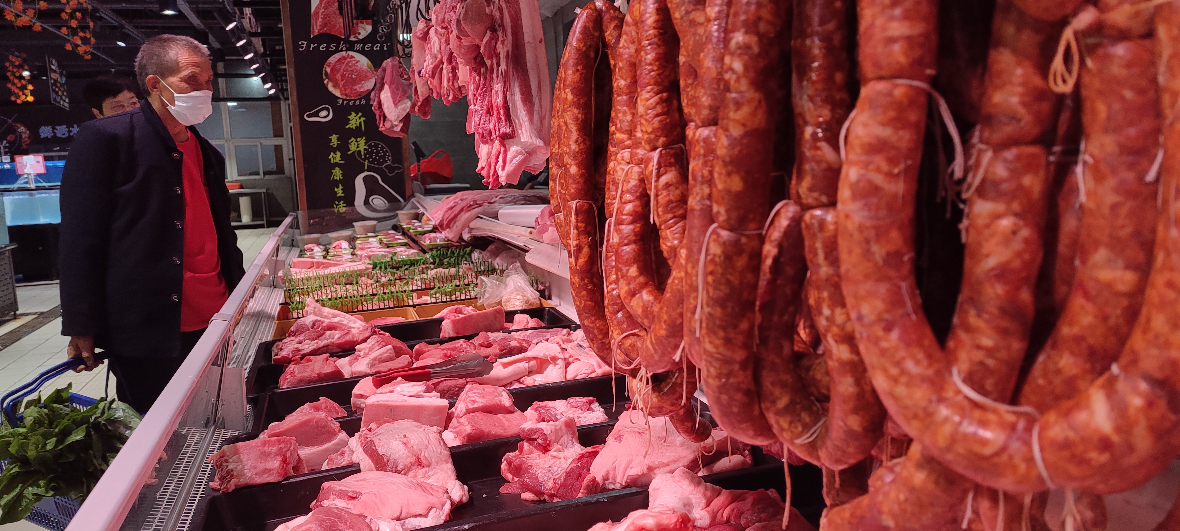 5日下午,市民咨询资阳市雁江区超市灌装香肠。(胡佳音摄)