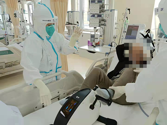 医护人员正在帮患者锻炼身体 (兰州大学第一医院供图)