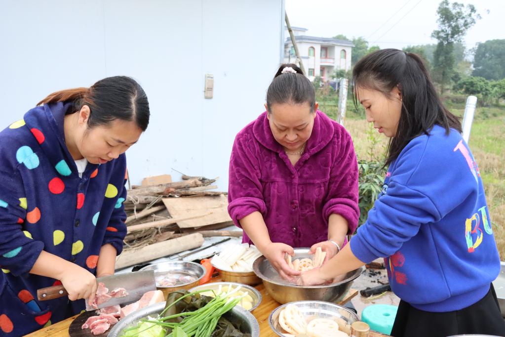 村民何中英说:“最近天气有点冷,所以大家提议一起吃火锅。”经过一阵忙碌,大家一起分享这顿特别的“火锅大餐”。