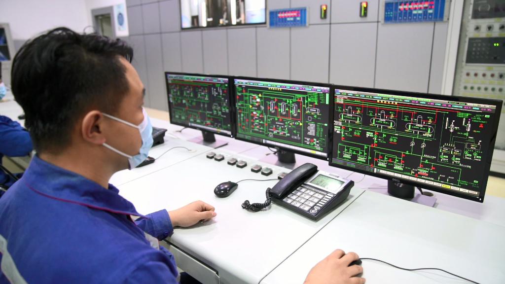 黑河市热电有限责任公司里正在工作的职工。新华社记者王松 摄