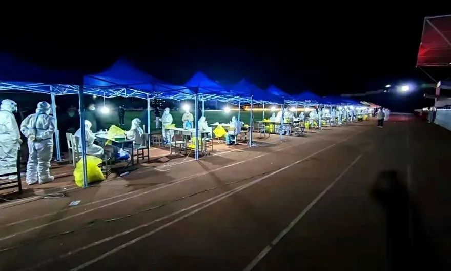 凌晨的温度渐降,我们望着月亮,大家都无比安静,似乎在思考着该说些什么,等待进行核酸检测。
