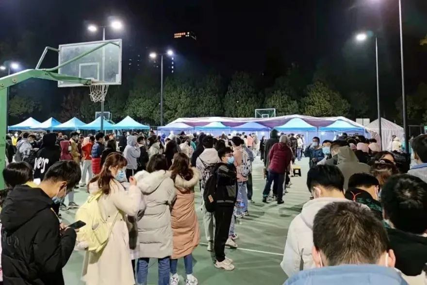 “我有小麻花你要不要”, “我有士力架你饿不饿”, “那里有热水,我们去接点吧” ,“你是不是穿的太少了,冷不冷”……同学们关怀的话语时而打破凝固的气氛。 做完核酸到达培训教室时已是深夜1:22,之所以记得这么清楚是因为我当时还想着要发个朋友圈,可惜手机关机了,朋友圈也就没发出去。