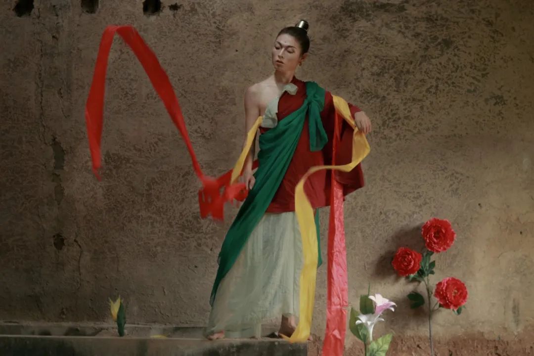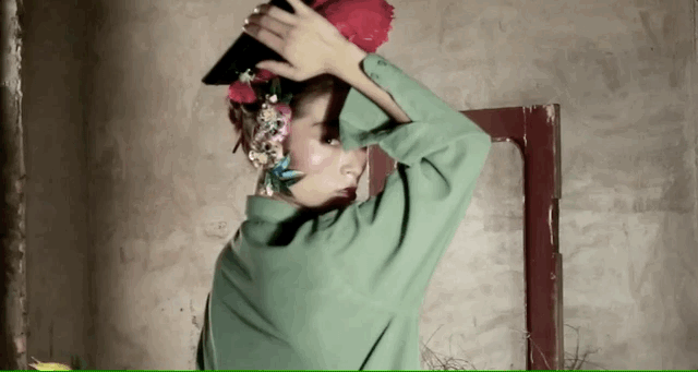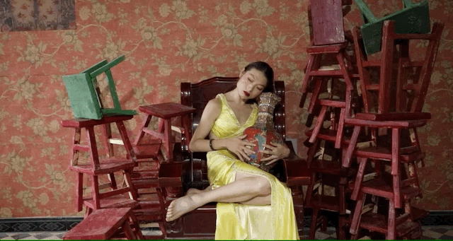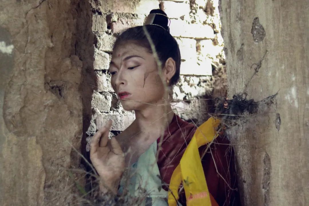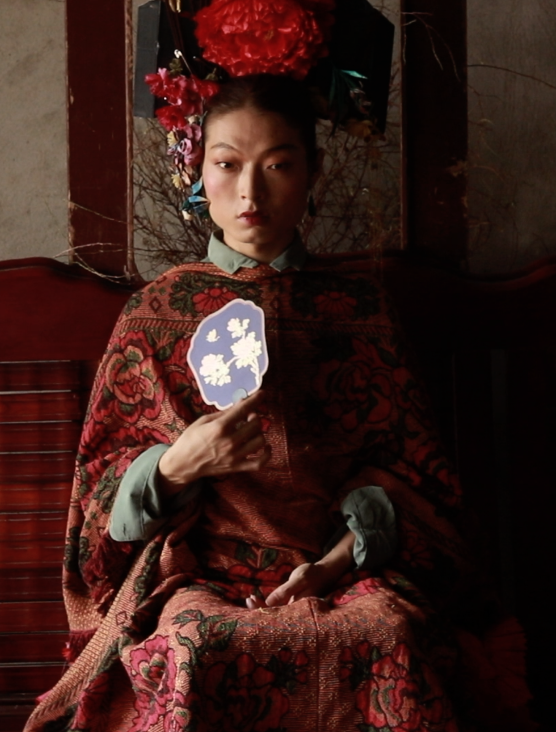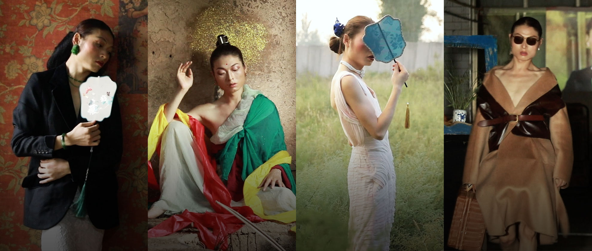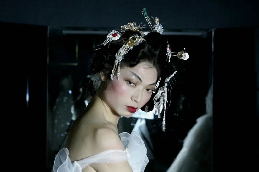 雯方以敦煌壁画、《末代皇帝》为灵感创作的“大秀”,尽管布景简陋、素材破旧,却有华丽的美感