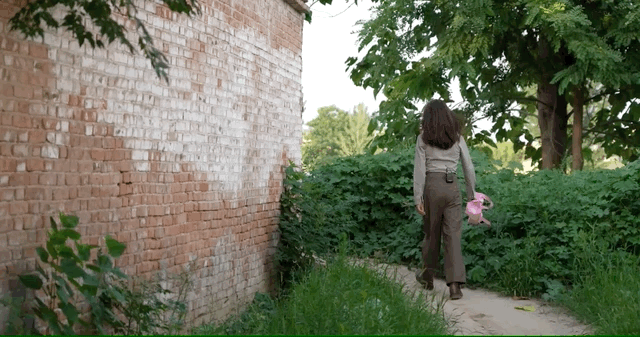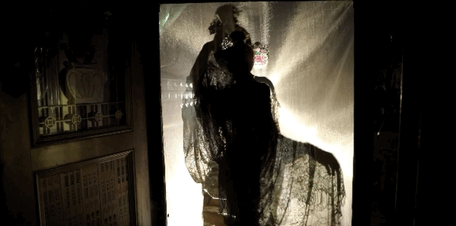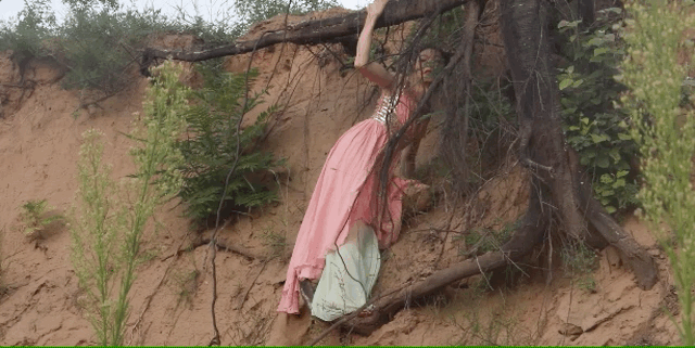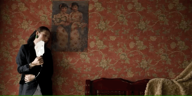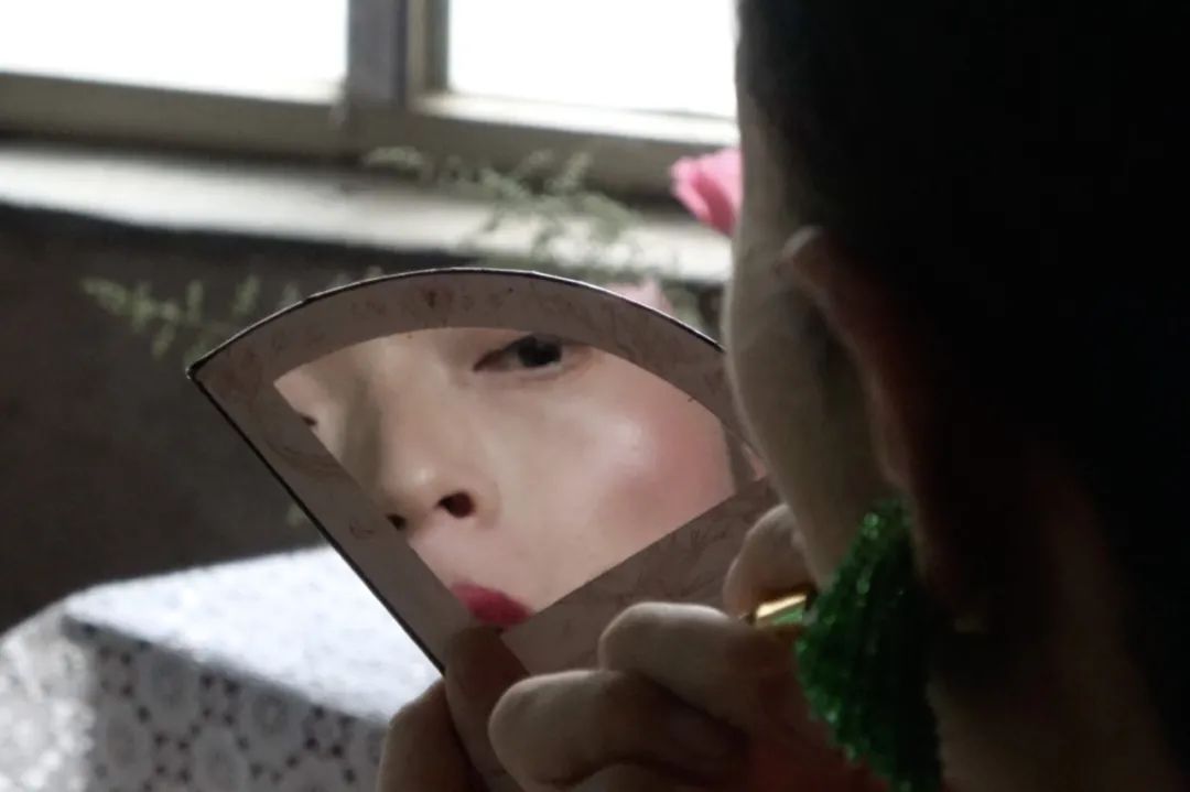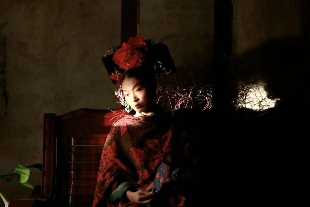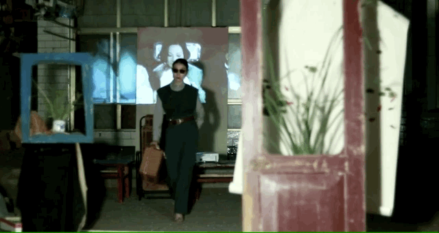 他对“秀场”布置得也颇用心,找来了羊圈的门板,废弃的窗框,绿色的野草和红色荆棘,在窗外放置了一面反射光线的镜子,配上墙上影片人物的光影流动,一时之间仿佛真的还原了一场清朝末年的旧时绮梦。