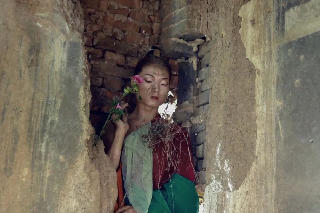 “敦煌”主题的拍摄就在一座废弃的土屋里,因为长久无人问津,已经结了蛛网,蛛网上挂着鲜活的蜘蛛。闷热的环境里,蚊虫肆意横行,但是他一看到的时候,就知道,这是自己想要的拍摄环境。