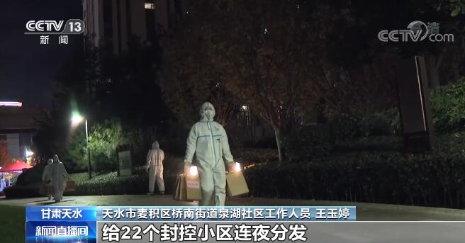 天水市麦积区桥南街道泉湖社区工作人员 王玉婷:因为这个小区不是集中供暖,昨天我们挨家挨户打电话统计了他们的天然气,进行了采购,准备了(抗疫)爱心包,给22个封控小区连夜分发。