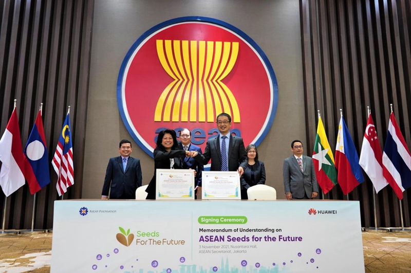 据介绍,此次东盟基金会与华为东盟学院签署了谅解备忘录,将合作开展“东盟未来种子”项目,提高东盟十个成员国青年的数字能力,助力青年们在数字经济时代茁壮成长。