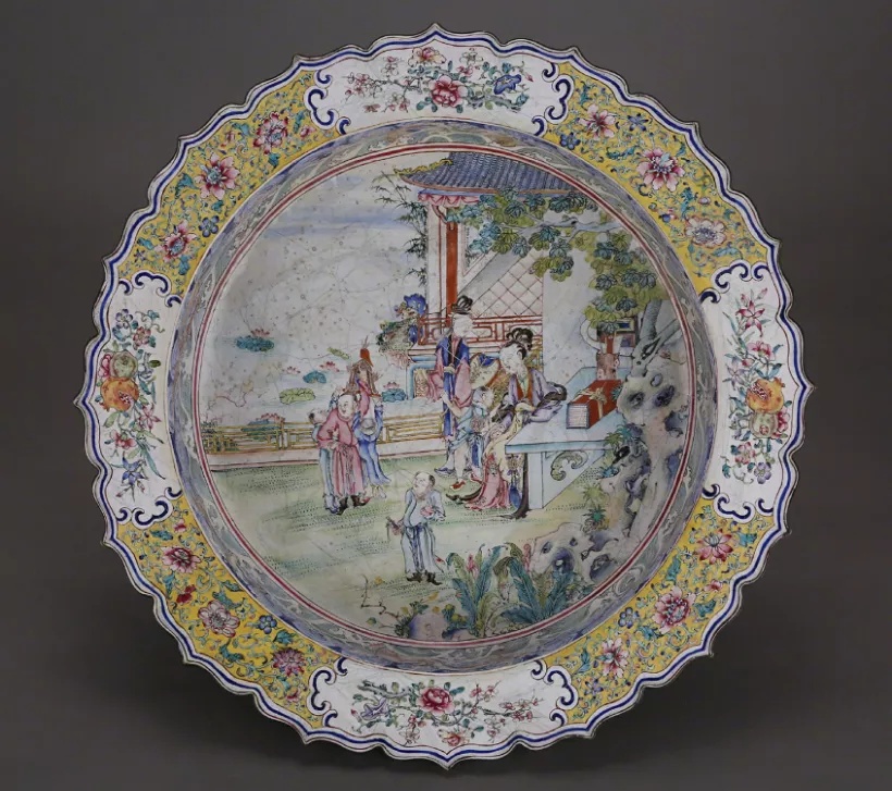 但是目前来看,国外留存的康雍乾三朝画珐琅制品并不多,当时的外国虽有订单需求,但基于国内对铜的管控之严,出口量并不像瓷器那么庞大,能流出国的多属赏赐或者夹杂、走私;或者为后世流出去的。