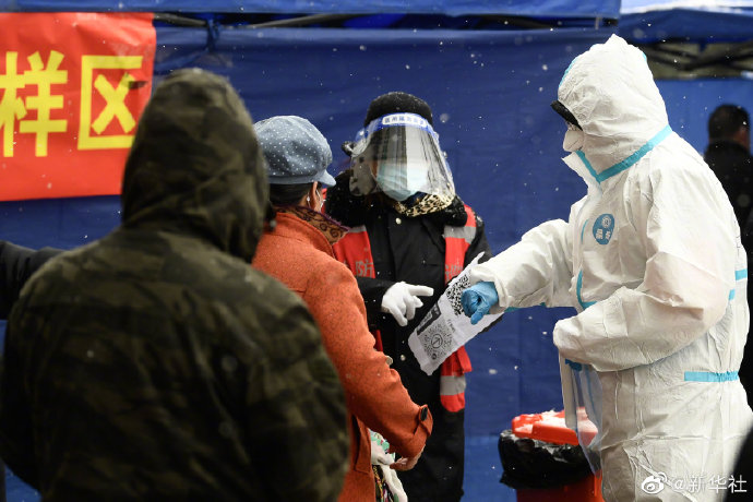 青海省西宁市6日启动主城区全员核酸检测,计划两天内完成。西宁市主城区共安排核酸检测点484个,采样台2160个,配备采样工作人员6480人。工作人员在风雪寒潮天气中全面开展核酸检测,防止疫情传播和扩散。(记者张龙)