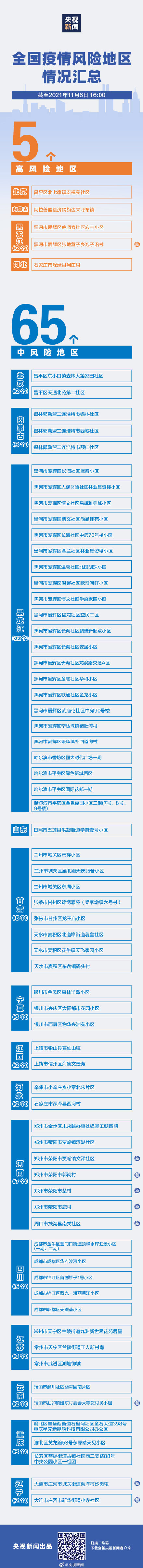 全国现有5地高风险65地中风险
