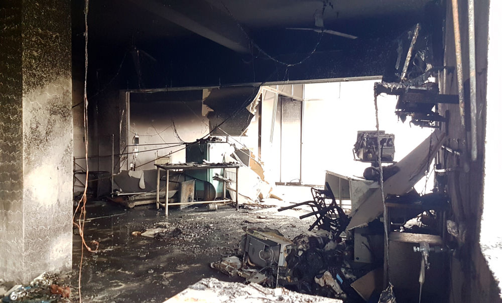 5月1日,印度布罗奇新冠肺炎定点医院失火后一片狼藉。(新华社发)
