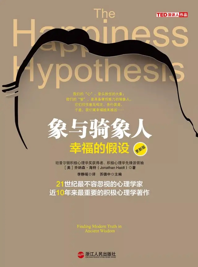 作者提出,人的心理可分为两半,一半像一头桀骜不驯的大象,另一半则是理性的骑象人。这两个分裂的部分,使得人们常常陷于理性与非理性的思想争战之中,而这种争战不仅会影响我们的决策,也会削弱我们的幸福感。