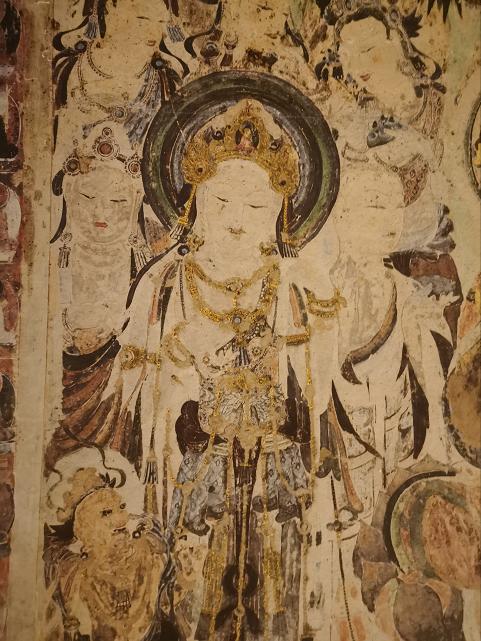 而这座洞窟里还有一个非常有名的,就是被誉为“最美菩萨”的57窟右侧的观音菩萨壁画。