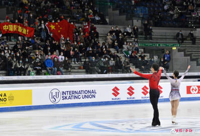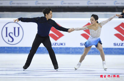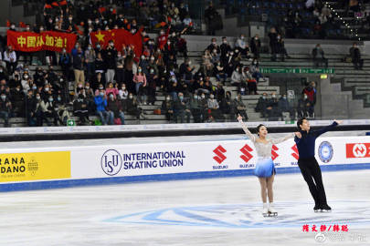 【#中国选手包揽意大利站大奖赛双人滑冠亚军#】 11月6日,在意大利都灵举行的2021-2022赛季花样滑冰大奖赛意大利站双人滑比赛中,中国选手隋文静/韩聪以224.55分的总成绩夺得冠军,彭程/金杨以211.66的总成绩夺得亚军。