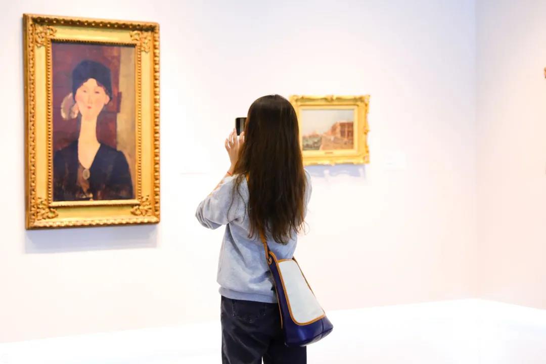 其中国际知名艺术品拍卖行佳士得带来的一件作品,堪称美术馆馆藏级别的杰作。这便是出自意大利现代主义艺术大师亚美迪欧·莫迪利安尼之手的人物肖像画作《门前的阿特丽斯·哈斯丁》,妥妥占据展区“C位”。这件作品上一次公开展出,还是在1973年,距今近半个世纪。