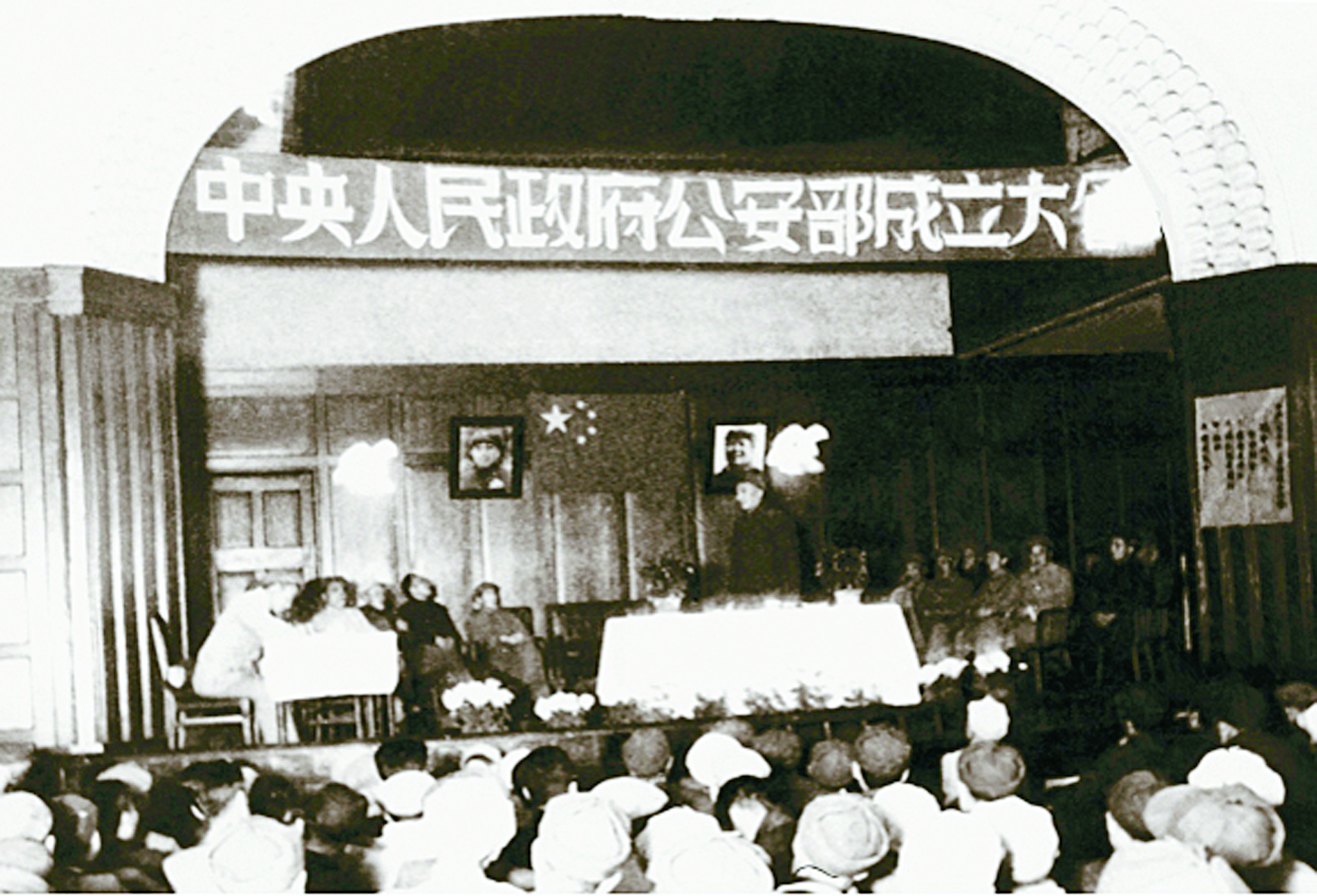 11月1日,中央人民政府公安部正式开始办公,并启用印信。11月5日,罗瑞卿主持召开中央人民政府公安部成立大会,到会科员以上干部300余名(当时共有干部486名)。罗瑞卿在会上号召大家以保卫国家政权、保卫人民为重任,要求公安干部树立艰苦奋斗、埋头苦干、实事求是、联系群众的作风,努力学习,精通业务。
