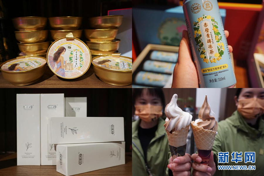 2021年11月6日,第四届中国国际进口博览会赤壁青砖茶国际体验馆内的茶叶衍生品。新华网发