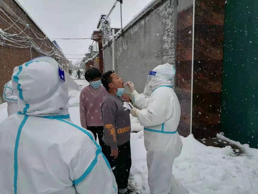 在辛集市、晋州市和深泽县,医护人员、志愿者和基层干部冒着严寒,各司其职,城乡居民积极有序配合,保障了核酸采样高效有序推进。