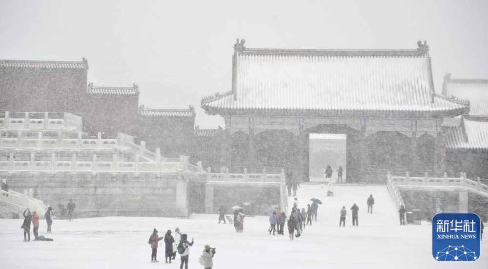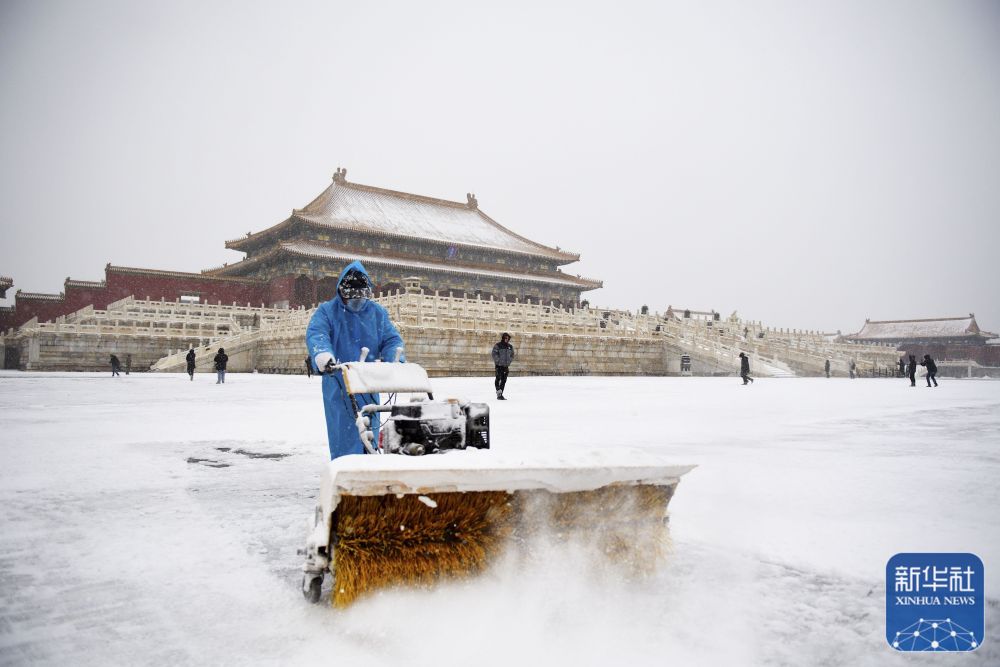 △11月7日,工作人员在北京故宫扫除冰雪,保障游客安全。