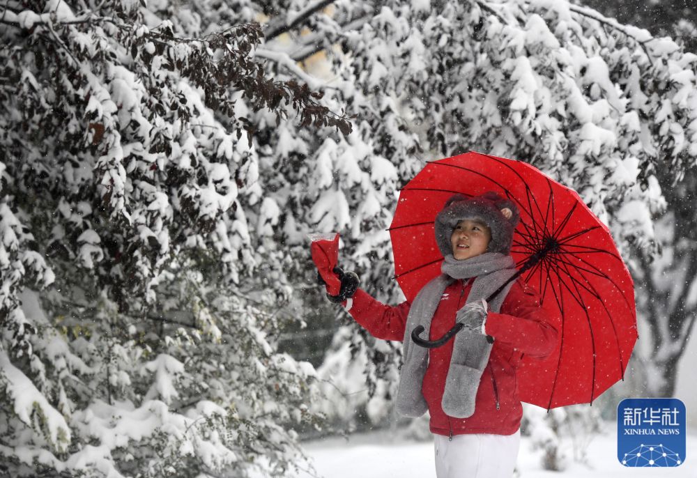 △11月7日,环卫工人在北京市昌平区天通北苑第二社区外撒融雪剂。