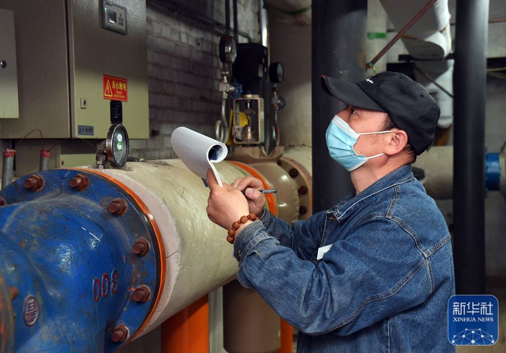 △11月6日,在北京交通大学供暖交换站,工作人员查看供暖设备运行情况。