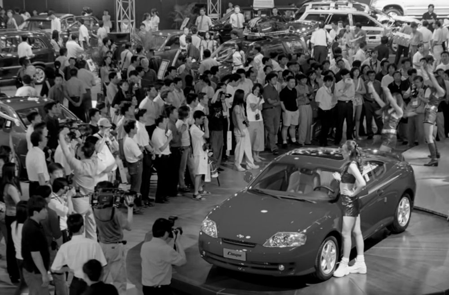 2002年,第七届北京国际汽车工业展览会在北京举行。2002年,北京机动车保有量达170多万辆,其中登记在个人名下的各类机动车超过50%。新华社记者 庞兴雷 摄