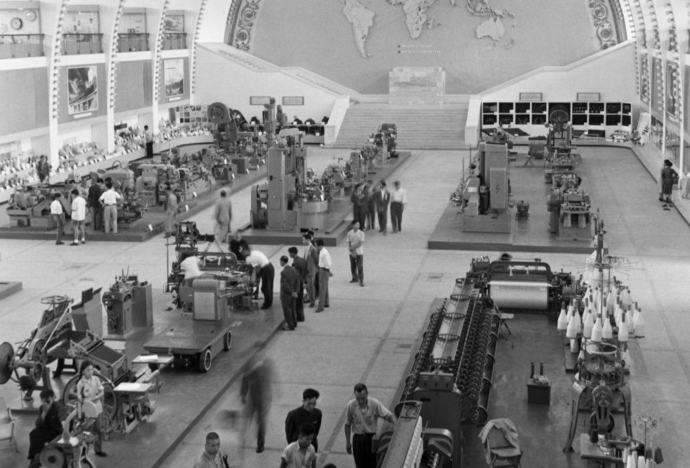 1965年,面向农村轻工业产品展览会在上海举行。展览会展出了玻璃陶瓷、日用机械、文化用品、日用化学、食品等15个行业的1万多件产品。新华社记者 夏道陵 摄