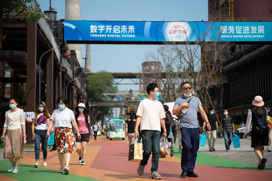 2021年9月2日至7日,中国国际服务贸易交易会在北京举行。这是观众在服贸会首钢园区内参观。新华社记者 陈钟昊 摄