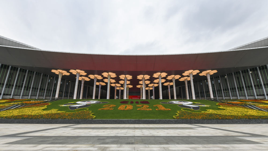 2021年11月4日拍摄的第四届中国国际进口博览会举办地国家会展中心(上海)。新华社记者 张豪夫 摄