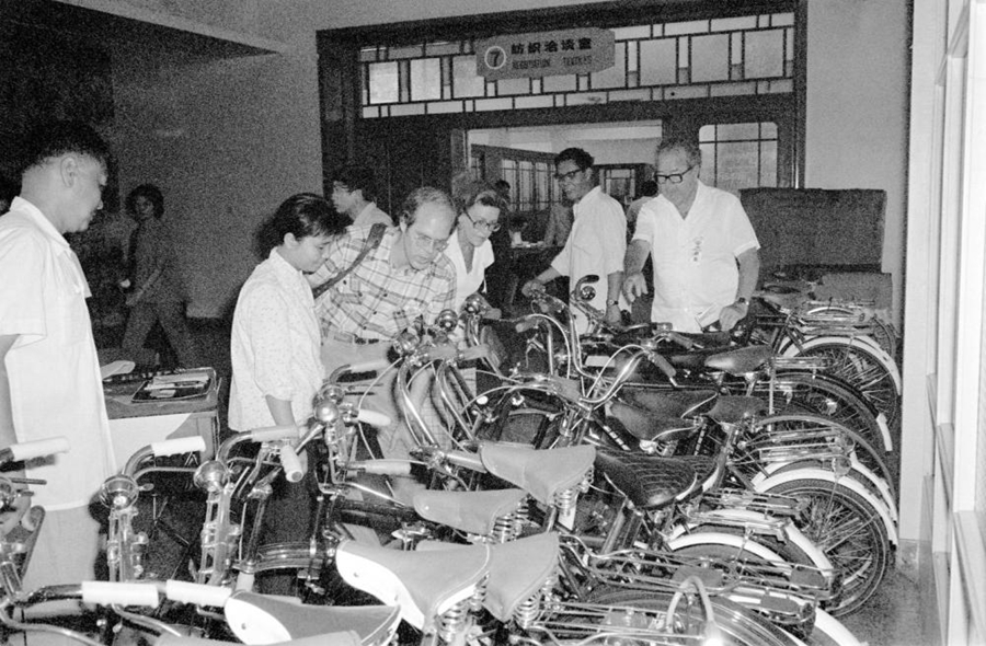 1981年,中国出口商品交易会在广州举行。这是客商在展会上选购自行车。新华社记者 黄鉴秋 摄
