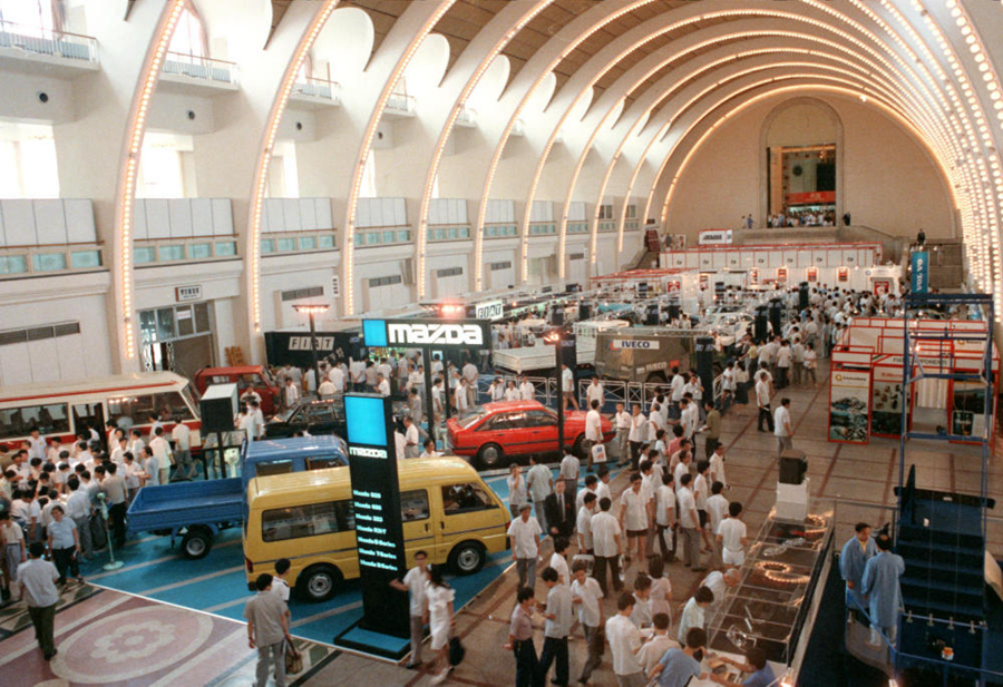 1985年,国际汽车工业展览会在上海举行。展会上共展出了20个多个国家和地区、320多家厂商制造的汽车及零部件。新华社记者 张平 摄