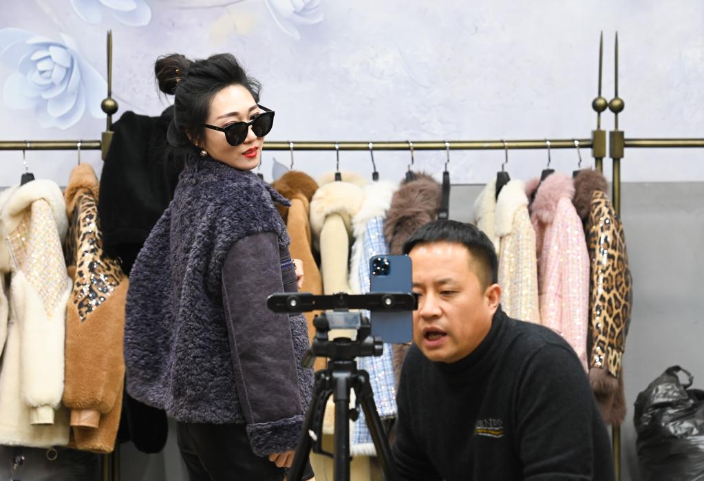与线下销售相比,线上销售更为火热。“梵凡皮草”是较早吃直播电商“螃蟹”的商户之一。“我们现在每天直播能卖3000单至5000单,全年销售额达到1.5亿元,线上销量和利润已经是实体店铺无法比拟的。”商铺老板郑中辉说。