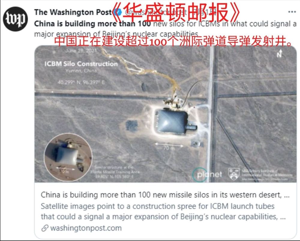 就在今年,美国媒体还将甘肃玉门的风力发电基座,炒作成“导弹发射井”。美国高官甚至还危言耸听,担忧是“中国核武库”。