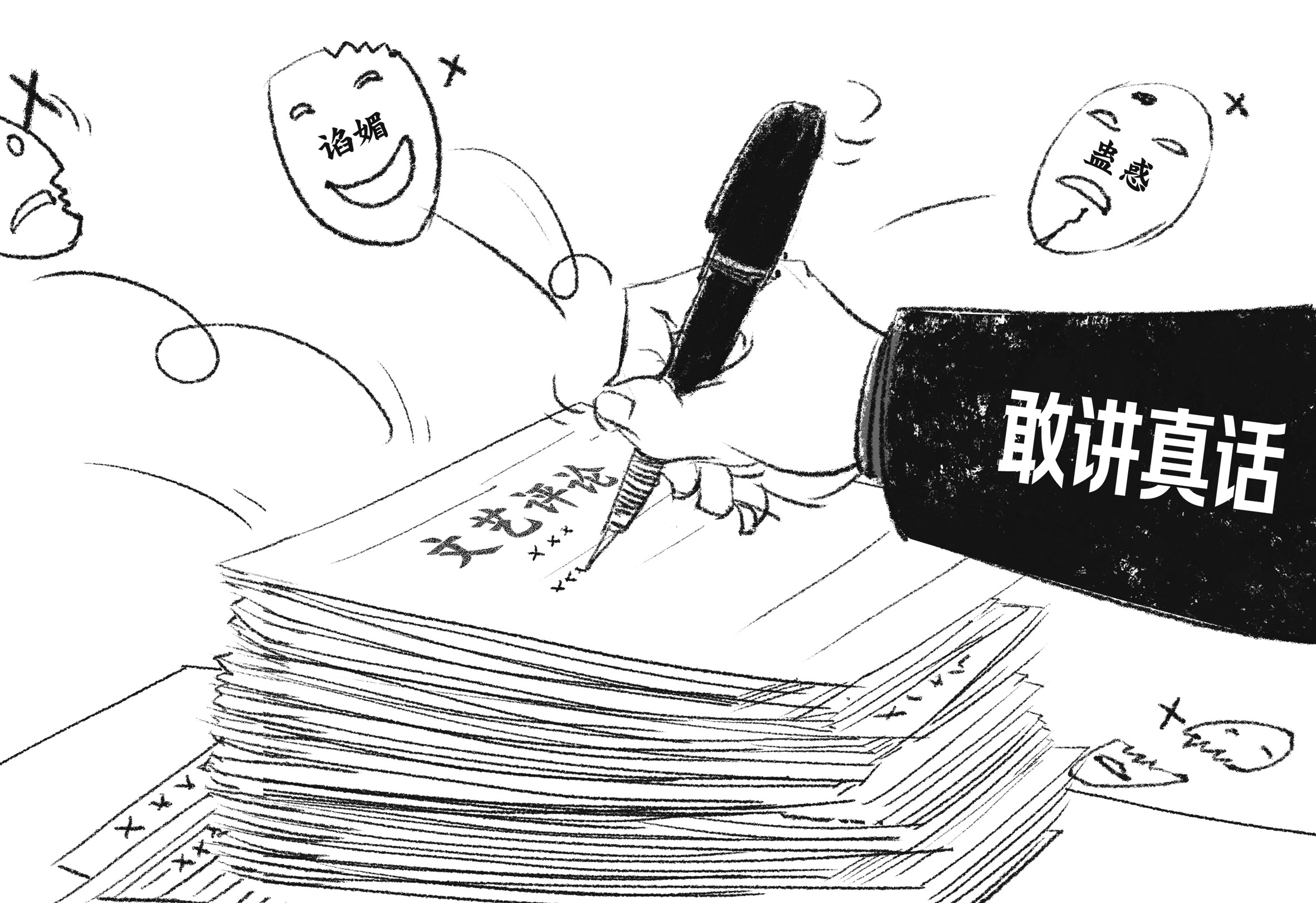 加强和改善文艺评论,首先要从说真话做起,进而改变文风,文章应当开门见山、言之有物、生动活泼、深入浅出。坚决摒弃八股评论,坚决摒弃拖泥带水,坚决摒弃概念空转。文艺评论也要接通生活源泉,要从民间文艺评论汲取营养。任何一个时代,文风都是精神生活作风的直观体现,繁缛的、绮靡的、矫揉造作的文风不是什么学术化,而是思想僵化贫乏的表现,华丽辞藻不过是思想苍白的掩饰。文艺评论贵在见识、思想和力量。期待文艺评论焕发新的活力,为新时代社会主义文化强国建设助力鼓劲。