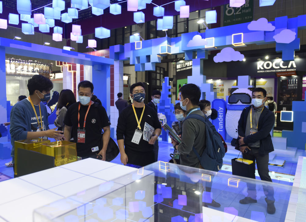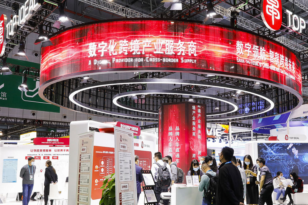 11月7日拍摄的进博会服务贸易展区的数字化跨境产业服务商。第四届进博会上展出的不少新产品和新技术,让观众近距离感受数字科技给生活带来的新变化和新体验。(新华社记者张玉薇摄)