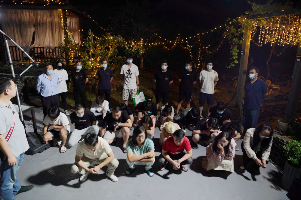 警方开展抓捕时,抓获该团伙“团建”中仍然忙着经营业务的工作人员
