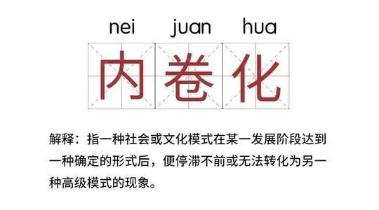 内卷,最早出自美国人类学家吉尔茨的《农业内卷化--印度尼西亚的生态变化过程》。本意是指人类社会在一个发展阶段达到某种确定的形式后,停滞不前或无法转化为另一种高级模式的现象。当社会资源无法满足所有人的需求时,人们通过竞争来获取更多资源。