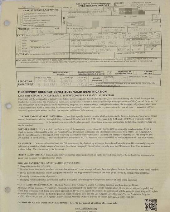 周批改表示,“当时评估了双方实力后,下意识挡开了对方手中的枪,因为以前在武校学过一些功夫,所以才敢回击歹徒,但事后回想起来有些后怕。”据洛杉矶警察局出具的一份调查报告显示,周批改被抢走的拖箱和衣物共计3130美金。