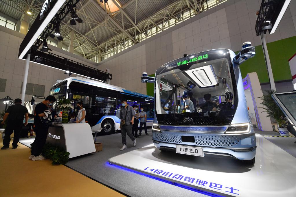 这是在天津梅江会展中心拍摄的L4级自动驾驶巴士(5月20日摄)。新华社记者孙凡越 摄