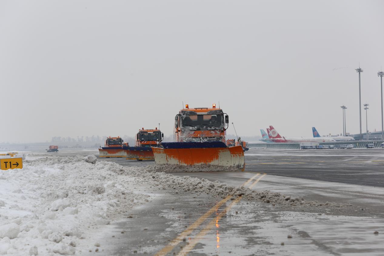 哈尔滨太平国际机场采取边下边清的作业方式,同时进行排水、推水作业,使积雪和积水尚未被车辆完全轧实就被清除,最大程度减少路面积水量,避免夜间道面结冰。同时合理调配车辆人员,采取“歇人不歇车”的方式,对跑道、滑行道、停机坪,对道面冰水混合物进行反复清理。