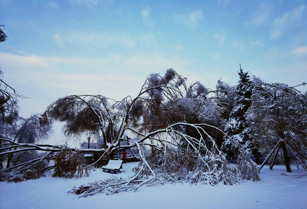 为应对突如其来的灾害,哈尔滨园林部门立即启动应急预案,全力排查和处理倒伏和折断的树木,出动人员1200余人,高枝车、工程车、油锯等设备200余台,当天就对92条街路,253株倒树、 930株断枝进行处理。