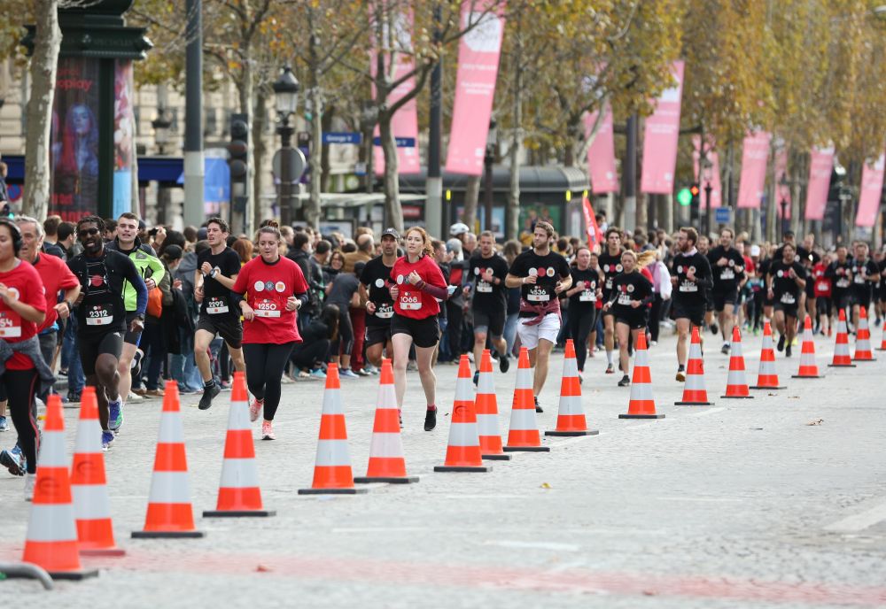 10月31日,为庆祝2024年巴黎奥运会倒计时1000天,法国巴黎香榭丽舍大街上举行全民马拉松5公里跑比赛,超过3600名选手参赛,沿途鲜有观众戴口罩观赛。(新华社记者高静摄)