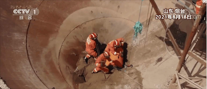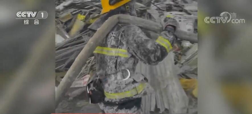 砂石在不断滑落,消防员一边奋力铲砂,一边营救被困者。突然,一面砂石塌落下来。没有片刻犹豫,这名消防员用身体挡了上去。