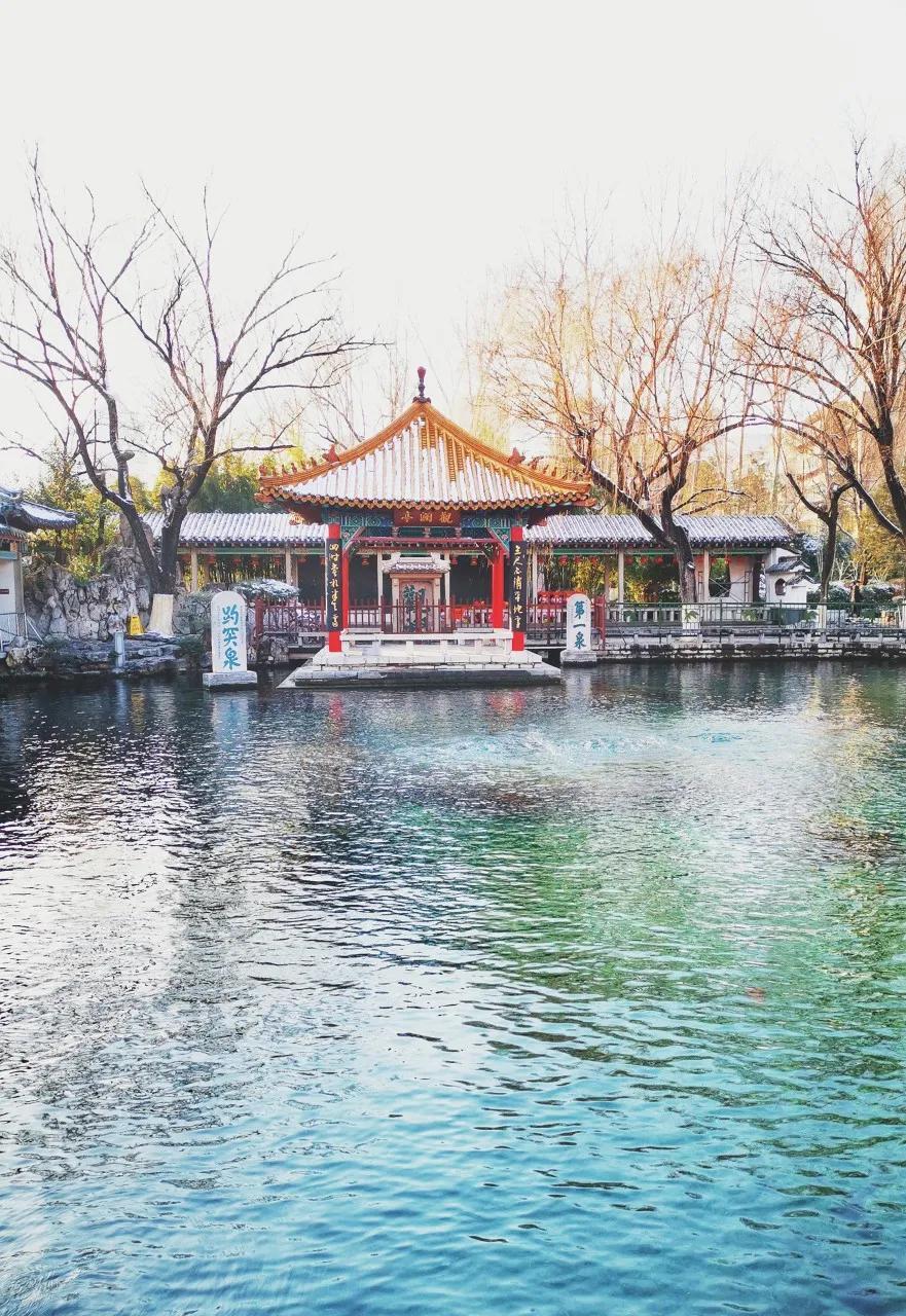 而趵突泉中的泉水在雪的映衬下也雾气蒸腾,别有一番风韵。